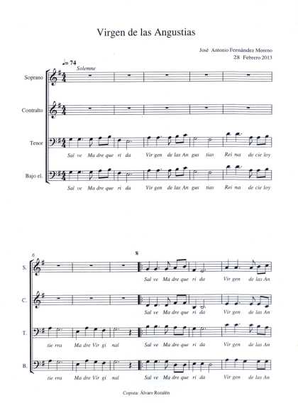 Es precisamente el director de este coro, D. José Antonio Fernández Moreno, quien compone por encargo de la Junta de Diputación de la Cofradía, un Himno a Nuestra Señora de las Angustias.